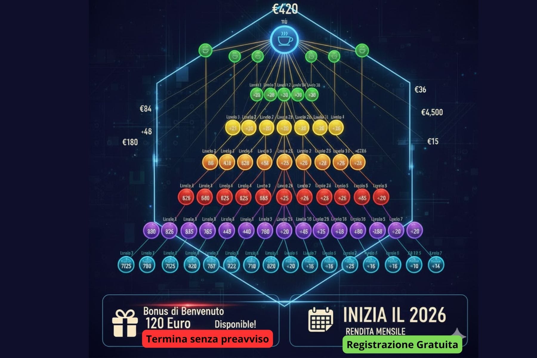 Appena ti registri gratuitamente, la tua Matrice è già attiva e inizia a generare guadagni grazie al lavoro degli altri (Spillover).